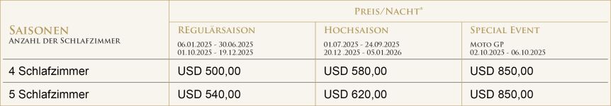- Nutzung der gesamten Villa und aller Einrichtungen